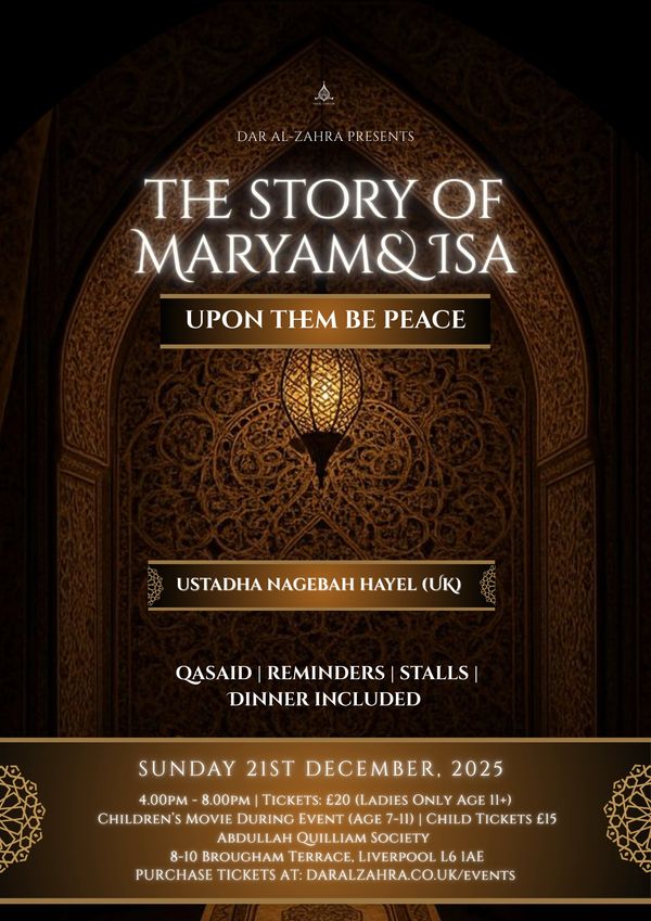 Join us for a gathering of remembrance as we explore the story of Maryam and Isa (upon them be peace) with our dearest Ustadha Nagebah Hayel