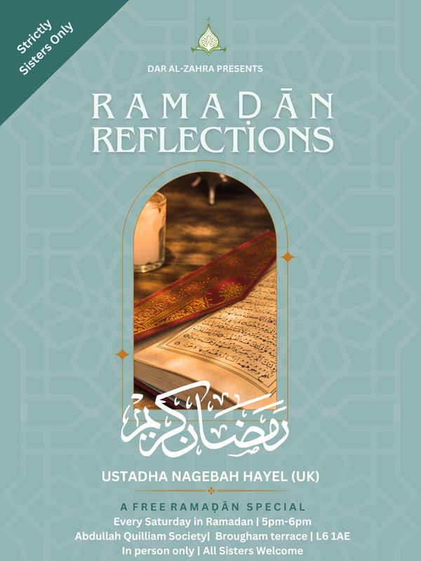 Alhamdulillah, we are pleased to bring to you Ramadan Reminders with our dearest Ustadha Nagebah Hayel. Classes will take place every Saturday in Ramadan inshallah.
